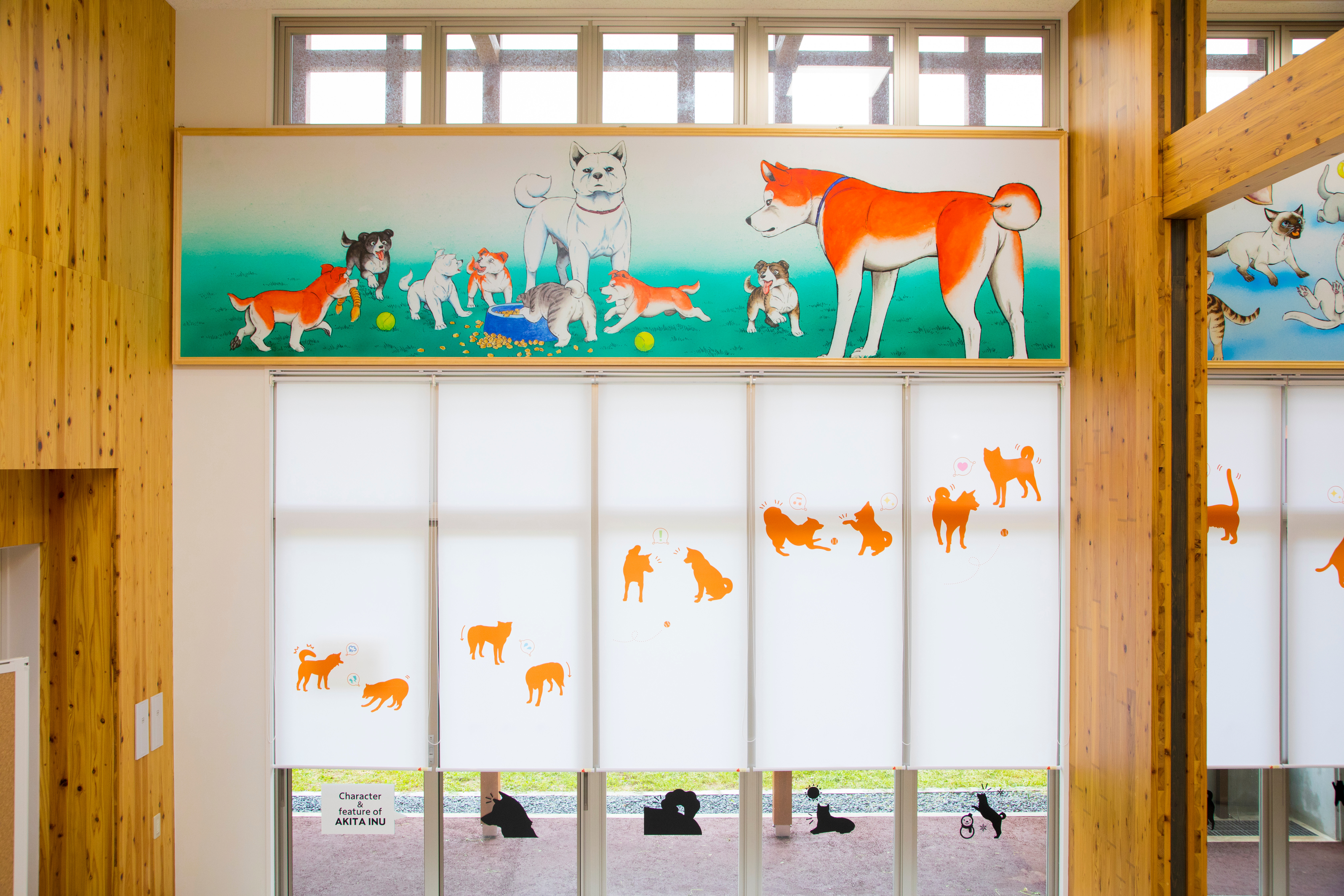 主人公・銀は秋田犬だよ。『銀牙 -流れ星 銀-』は秋田県出身の漫画家高橋よしひろさんの代表作品です。当センターの壁面絵画も描いてもらったよ!